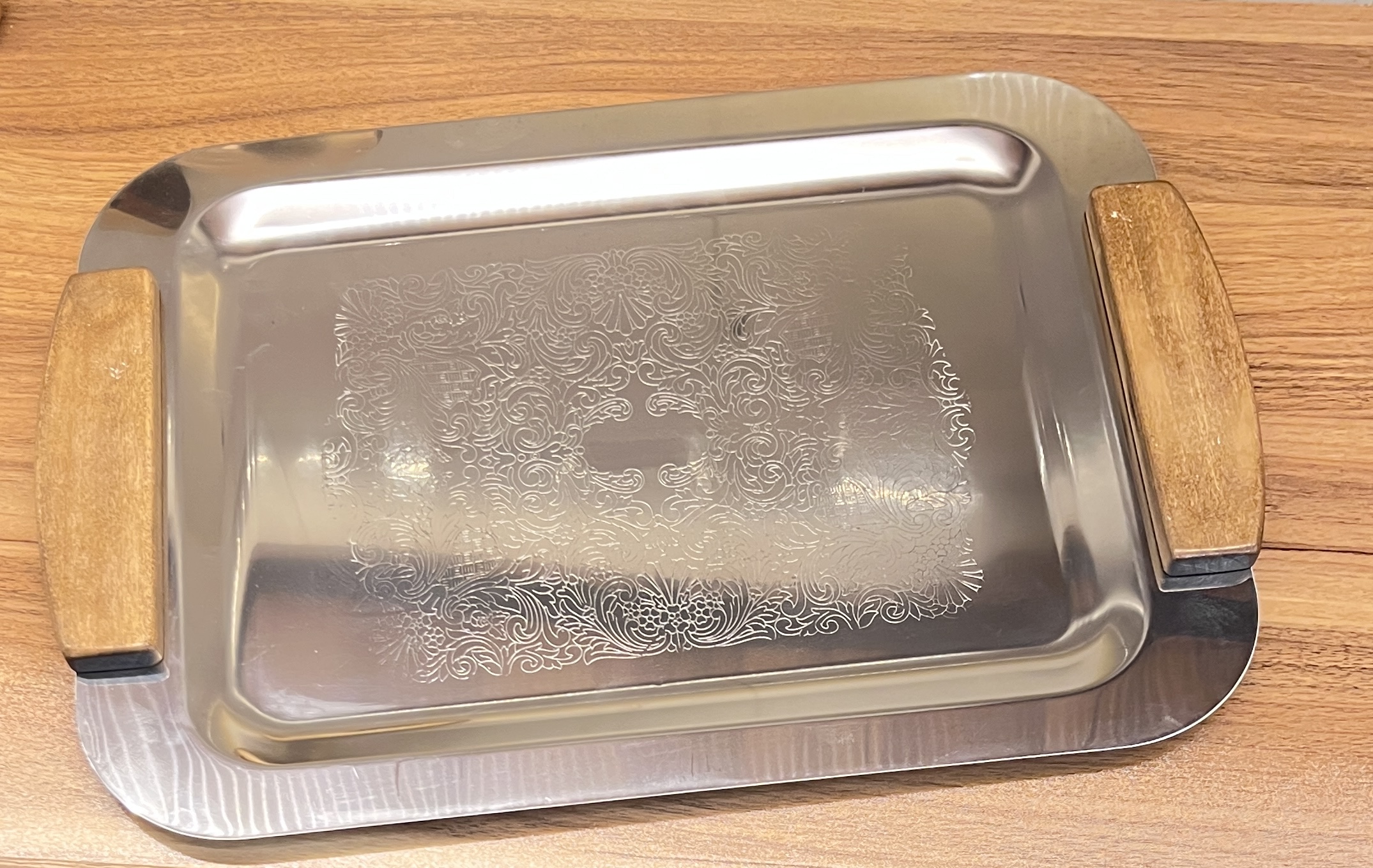 سینی استیل خارجی دسته چوبی سایز بزرگ